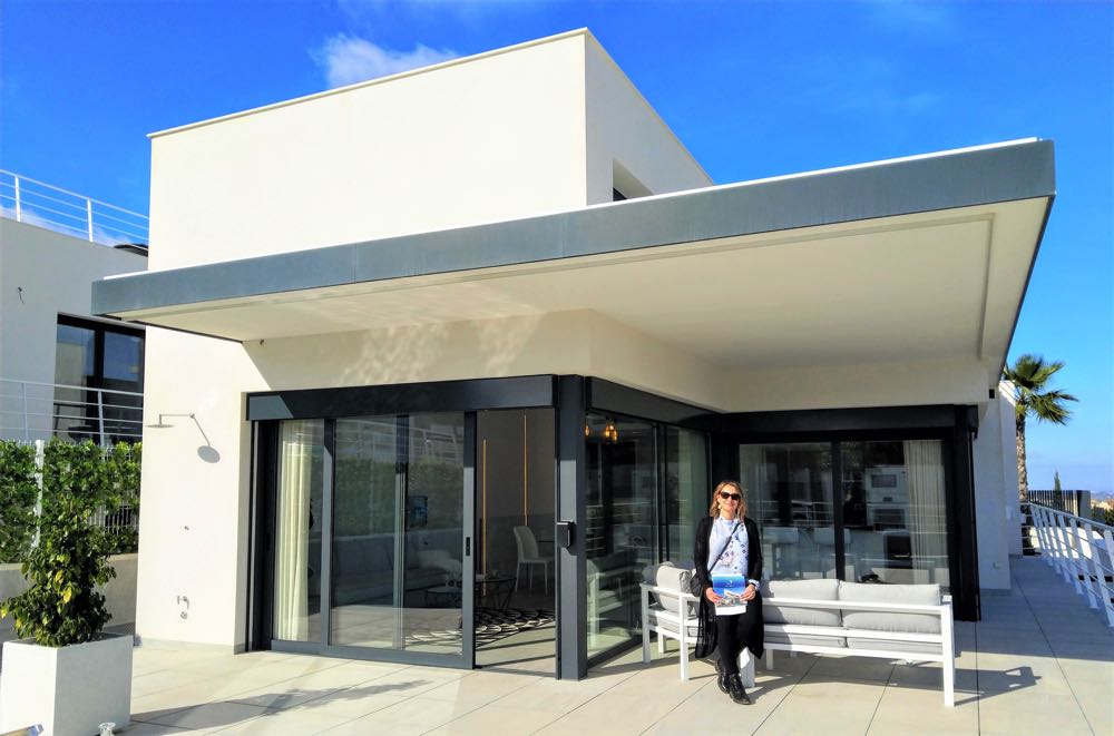 Viikko huipentuikin sitten perjantaina erään rakennuttajan mallitalojen esittelytilaisuuteen San Miguel de Salinaksen kukkuloilla. Niin upeita luksusluokan villoja, joista oli näköalat suolajärville ja merelle. Ja mikä ihana pieni kylä tämä San Miguel de Salinas olikaan. Olin kyllä ihan myyty!